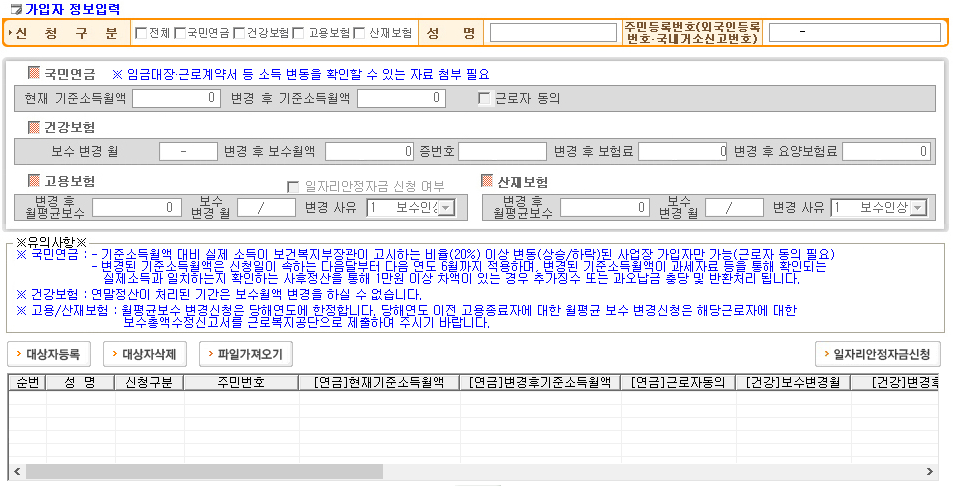 만약 취득 시 기준소득월액을 잘못입력하였다면, 사업장가입자 내용변경(정정) 신고서에서 기준소득월액을 정정신고해야 해요.