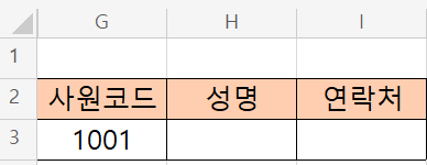 조건값 : 사원코드의 성명을 구하기 위함이기 때문에 조건인 "1001"의 G3을 입력합니다.