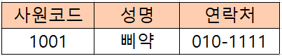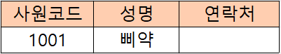 그럼 사원코드 "1001"에 대해 성명과 연락처가 구해집니다.