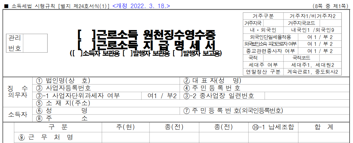 #중도퇴사 #원천징수영수증 #종전근무지원징