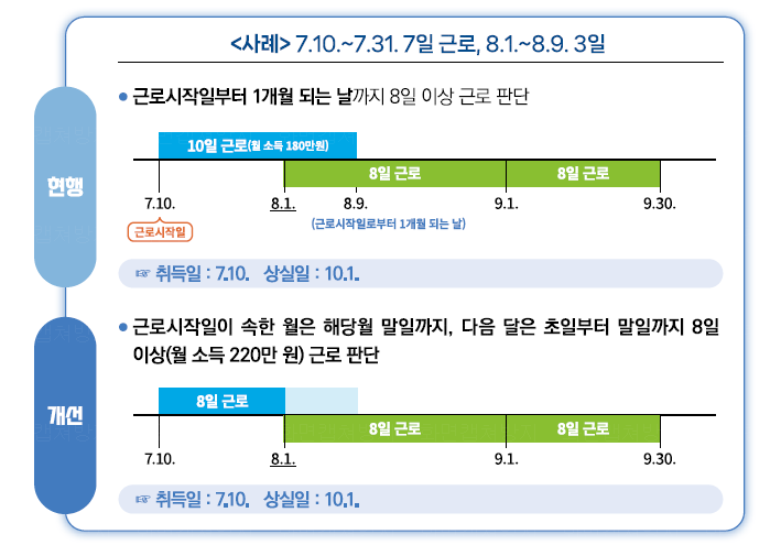 (개선) 7.10 근로시작 시 7.31 기준으로 1개월 판단