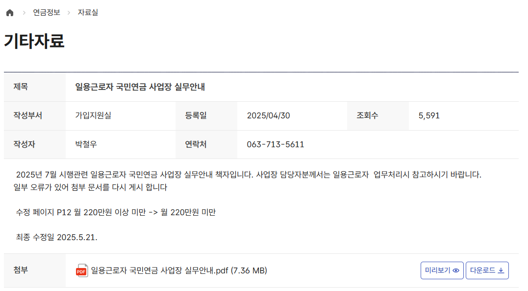일용근로자 국민연금 25년 7월 1일부로 개선된 내용에 대해서 포스팅하겠습니다.
