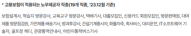 고용보험이 적용되는 노무제공자의 직종입니다. 참고해 주세요.